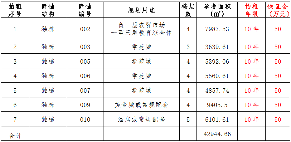 (一)拍租位于鎮(zhèn)雄縣南臺街道呢嚕坪安置點7棟獨立商鋪使用權(quán)。以棟為單位拍租。詳見下表: