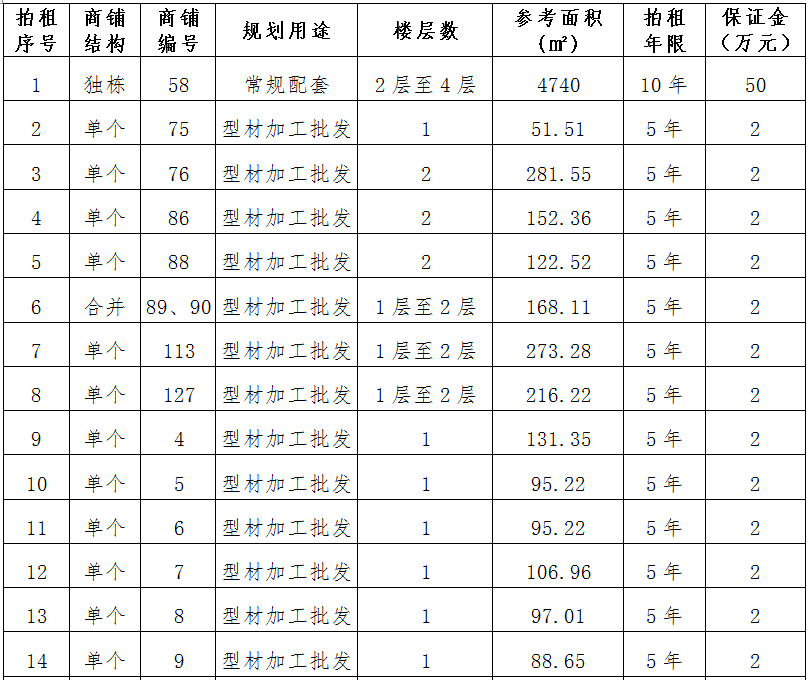 (一)拍租位于鎮(zhèn)雄縣南臺街道呢嚕坪安置點8間商鋪使用權。以間為單位拍租。詳見下表: