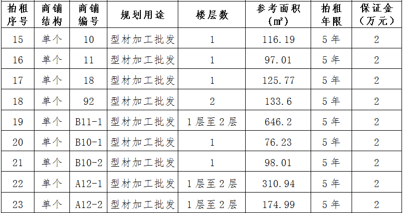 (三)拍租位于鎮(zhèn)雄縣舊府街道魯家院子安置點24間商鋪使用權。以間為單位拍租。詳見下表:
